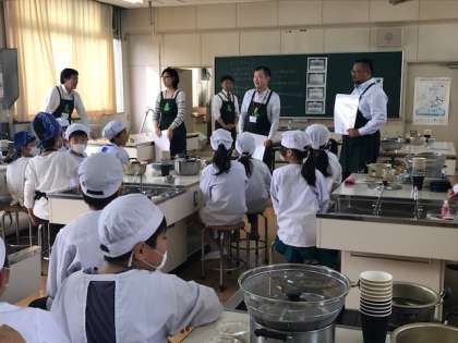 先週に引き続き、16日(火)に「大阪昆布商工業協同組合」から、5名の方にお越しいただき、5年生の2クラスが家庭科の「ごはんとみそ汁」の調理実習を行いました。昆布もかつおも、味噌も、豆腐もすべて国産の大変上質の物をご準備いただきより一層おいしいみそ汁をいただくことができました。ご多用の中、2日間子どもたちにボランティアで関わっていただき誠にありがとうございました。