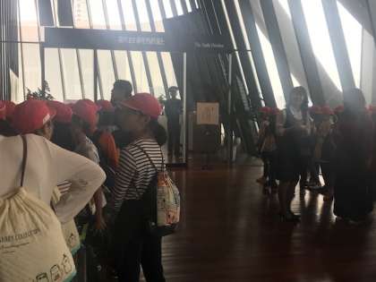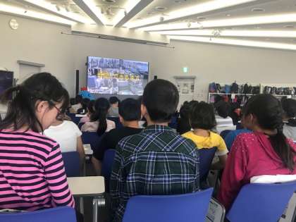 二つ目の見学先は「朝日新聞」社です。「新聞ができるまで」というDVDを見せていただいた後、いよいよ編集部の見学です。
