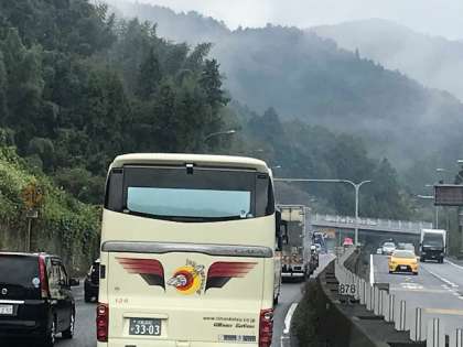 事故のため渋滞していましたが、現場を通過し、順調に流れ始めました。子どもたちは、バスレク係が作成したDVDを鑑賞しています。なかなかのできばえでみんな大盛り上がりです。