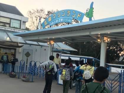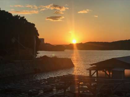 志摩マリンランドに着く直前、綺麗な夕日が見えました。予定より30分早くマリンランドに着きました。