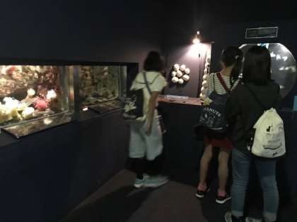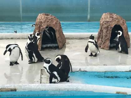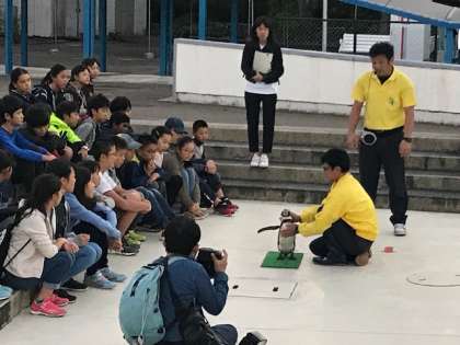 マリンランドに入ってすぐの所で、ペンギンたちがみんなを迎えてくれます。ペンギンタッチをさせてもらったり、館内の生き物を観察したりしています。