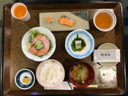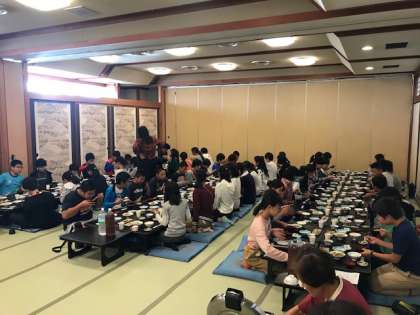 朝ごはんをいただいています。みんな、よく食べています。