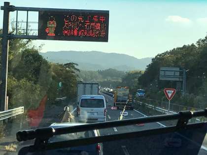工事による一車線規制の為、渋滞が発生しています。