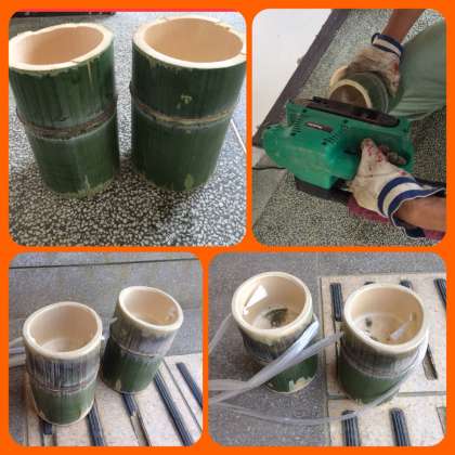 カットした竹を表面綺麗に整え・・・穴をあけて紐を通して出来上がりです!!!