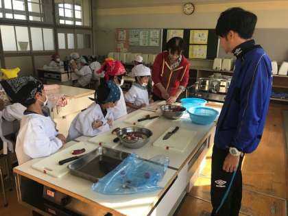 2年生は今週サツマイモの収穫をしました。収穫したサツマイモだけでは足りないので市販の物も足して、各クラス順番に家庭科室で蒸かしイモにしていただいています。