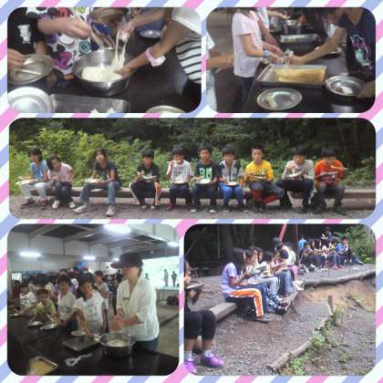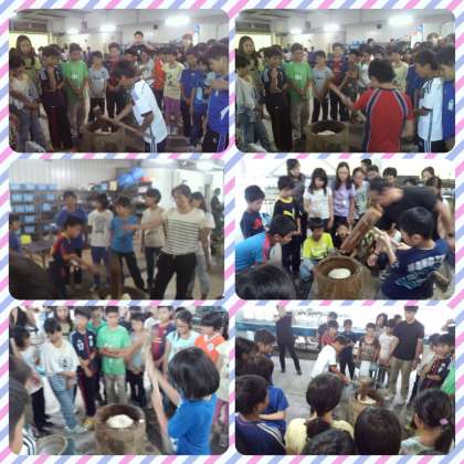 宿舎のそうじ、荷物整理をした後はもちつきタイムの始まりです(^.^)