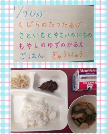 『くじらのたつたあげ』は、年1回給食で出るくじらを、しょうが汁、料理酒、こい口しょうゆで下味をつけることで風味よく仕上げています☆☆☆