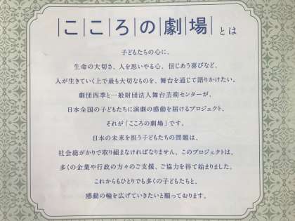 ○今日の劇を見て、劇団四季の人たちは、全員が笑顔でやっていて、こっちも楽しくなりました。なので、交歓音楽会の時には、自分たちが楽しんでやろうと思いました。
