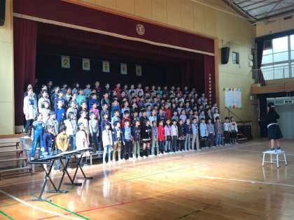 明日は土曜授業として交歓音楽会を実施します。保護者の皆様、地域の皆様是非ご来校いただき、子どもたちの発表をご覧いただければと思います。お越しの際には、お手数ですが、上履きをお持ちいただくとともに、外靴を入れる袋もご持参くださいますようお願いいたします。