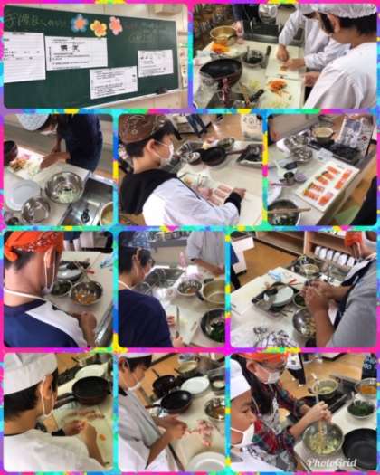 にんじんを大きくカットしすぎてベーコンを巻くのに苦労している班があったり、ハンバーグの中に入れる玉ねぎを大きくカットしすぎて混ぜにくくなってしまった班があったりもしましたが、どの班も協力しながら、手際良く作業を進めていました☆☆☆