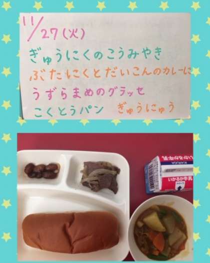 『豚肉とだいこんのカレー煮』は、豚肉とだいこんを主材に、じゃがいも、にんじん、三度豆を使用し、カレールゥで味付けしています♪♪♪