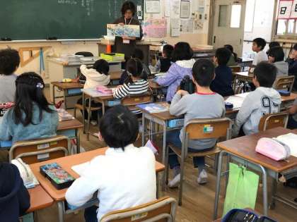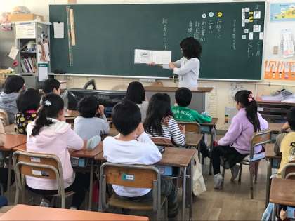 28日(水)にはぐくみネットの方々による「おはなしランド」がありました。今回は3年生でした。どのクラスも「だいくとおにろく」(福音館書店 再話 松居 直 絵 赤羽 末吉)の絵本を読んでいただきました。「おはなしランド」がある日は、内玄関に、「今日のおはなしらんどは〇年生です」と掲示されるのですが、3年生の女の子がそれを見て、「やったー、今日は3年や」と言いながら、歩いて来ました。「おはなしランド好きなの?」と尋ねると、「うん、めっちゃ楽しみ。」と答えて、教室に向かって行きました。