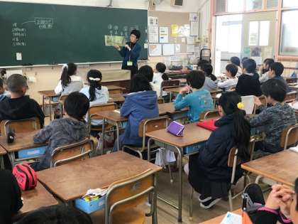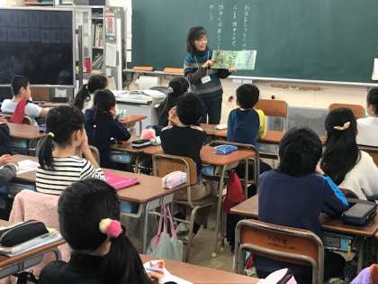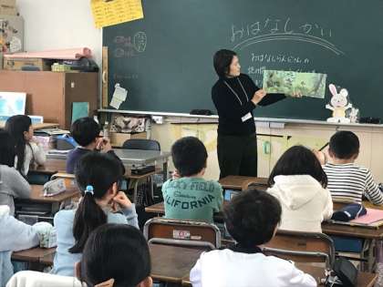 今日は4年生の各学級で、はぐくみネットの方々による「おはなしランド」がありました。先週の3年生と同じ「だいくとおにろく」の絵本を読み聞かせていただきました。