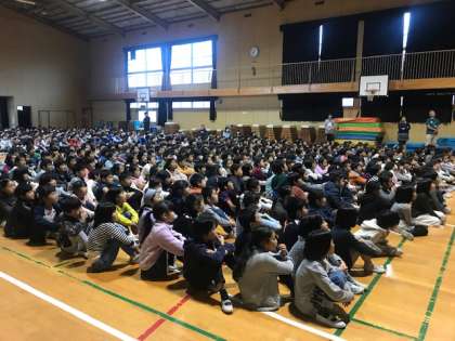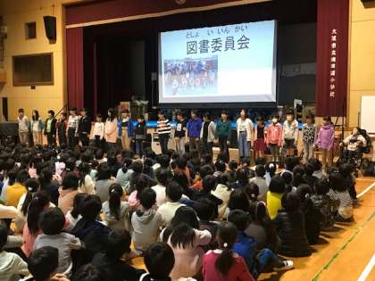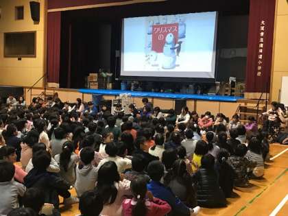 今日の児童集会は、図書委員会の発表でした。図書室の正しい使い方を呼びかけた後、絵本「クリスマスのきせき」の読み聞かせをしてくれました。途中まで読み進めた後「、続きは図書室で読んでください」という図書委員の子どもの呼びかけに、「えー!」と続きが聞きたいという声があがっていました。