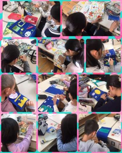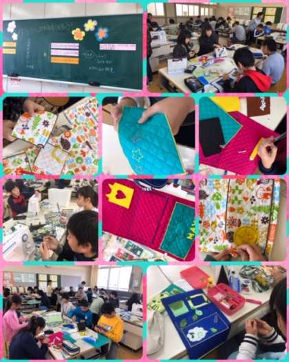 6年生が家庭科の実習でウォールポケットを作っています☆☆☆