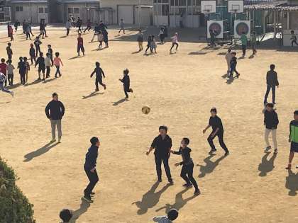 今日は3時限授業でした。2時限目と3時限目の間の15分休憩は、子どもたちが、運動場で元気に遊んでいました。