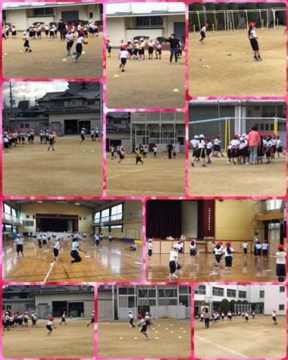 1組〜3組は運動場で、4組は体育館で運動をしていました♪♪♪