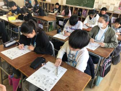 今日は6年生がCーNETのシャネイ先生と英語活動をしました。“Who is your hero?”というテーマで学習をしました。