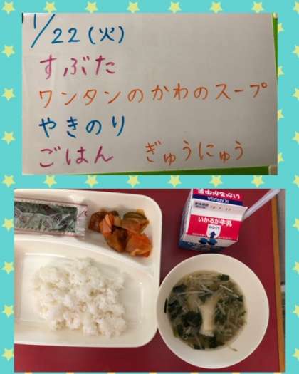 『ワンタンの皮のスープ』は小麦アレルギー児童の除去対応献立となっています☆☆☆