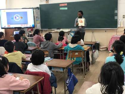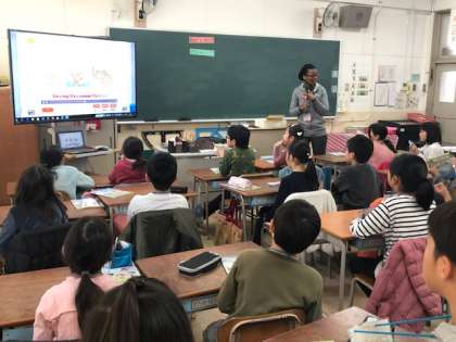 今日は3年生が、C-NETのシャネイ先生と英語活動をしました。