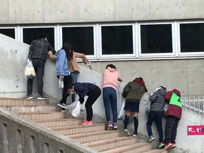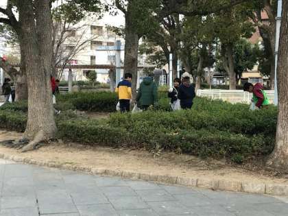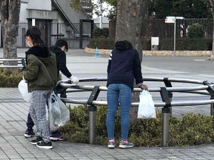 ごみを拾い出すと、いろいろなところが気になり始めます。柵の向こうに見えているごみでもそのままにしておくのは気持ち悪く、金ばさみや、棒などを使って引き寄せごみ袋へ。