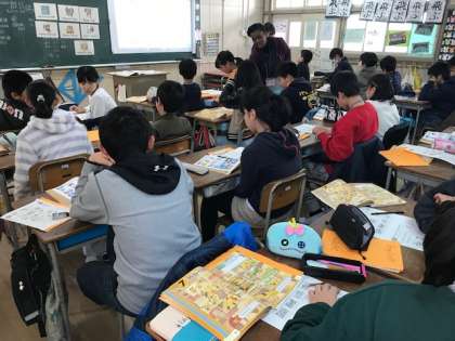 今日は、6年生がC−NETのシャネイ先生と英語活動をしました。今日のテーマは“My Best Memory”でした。私が教室に入ったときにちょうど“What’s your best memory?”と言う会話の練習をしているときだったようで、「校長先生、もう1回修学旅行へ行きたいです。」と話しかけてきた子どもがいました。「中学校の修学旅行をお楽しみに。」と返事しました。たくさんの楽しい思い出を胸に小学校生活を締めくくってほしいです。