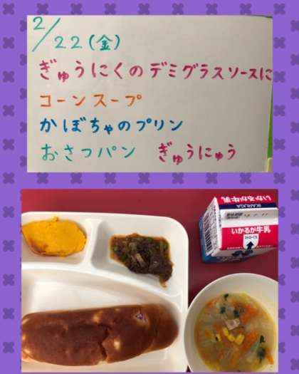 『コーンスープ』は、ベーコンの旨味とコーン、スイートコーン缶の甘味が調和した子ども達に人気のあるスープです♪♪♪
