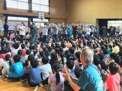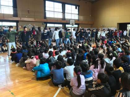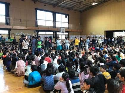 今年も「卒業」の季節を迎えました。今日の1・2時限目「卒業を祝う会」を行いました。在校生が待つ講堂へ、6年生が今年も各クラス趣向を凝らしたパフォーマンスを披露しながら入場してきました。