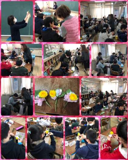 今年度も、はぐくみのみなさんが6年生の為に、コサージュ作りを教えに来てくれました☆☆☆