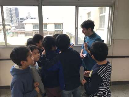 どの学年も学期に1時間ずつ英語を教えてもらっているので、マッシュ先生を見かけると、「あっ、マッシュ先生や!」と言いながら話しに来ます。