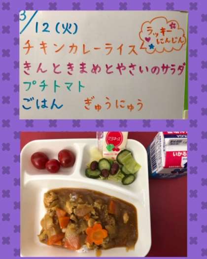 『チキンカレーライス』は、鶏肉を主材にした子ども達に大人気のカレーライスです☆☆☆