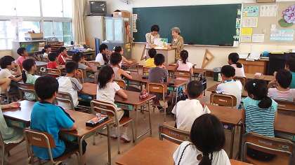 学校では、地域のボランティアの方による絵本の読み聞かせを、朝の時間(8時30分〜45分)にしています。しんと静まった教室で絵本や紙しばいなどを読んでいただき、子どもたちもお話しの世界に引き込まれています。