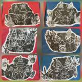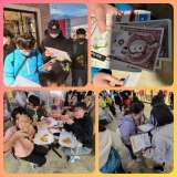 1年生の教室の後ろには、紙版画(鬼)が掲示しています。