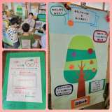 読書の木が掲示されました。「おもしろかった本をおしえあおう」をめあてに、おすす...