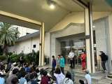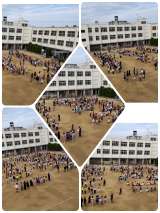 もうすぐ、学校へ到着します。 到着後は、講堂で帰校式を行います。