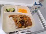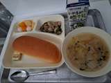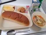 ●豚肉と野菜のソテー ●はくさいのスープ ●フルーツ白玉 茹でた白玉だんごとミ...