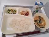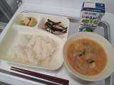 ●豚肉のねぎじょうゆ焼き ●みそ汁 煮干しで出汁をとったみそ汁です。 ●きくな...