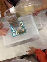 柴島浄水場でクラスごとに浄水場見学と浄水実験に分かれて美味しい水がつくられる様子...