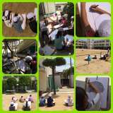 描く木を選び、サインペンを使って描きました(^.^) みんな真剣に木を見ながら描...
