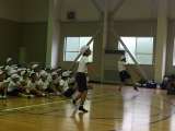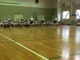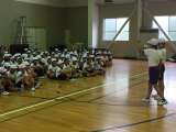 保健係の子どもたちが、前に出て、朝の体操です。ラジオ体操の合間に、昨年度の運動会...