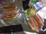 朝食はカートンドッグと野菜&フルーツジュースです。お腹も空いてきました。焼き上が...