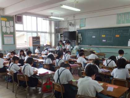 9月3日(水)、1年生が、9月15日に行われる敬老大会でお年寄りに贈る栞づくりをしていました。