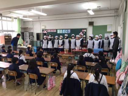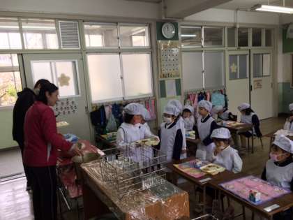 1年生には食器やおかずの運搬は大変なので、しばらくは6年生がお助けに来てくれます。