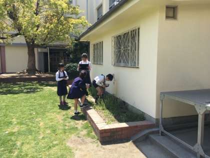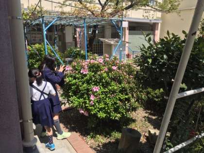 観察は、目で見るだけでなく、タブレット端末で写真を撮り、それを拡大することで、おしべやめしべなどの細かい様子を観察しました。
