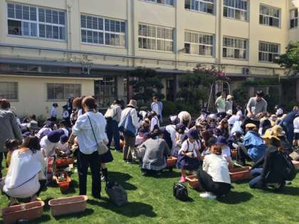 ビニルポットから苗を外すのに手こずっている様子も見られましたが、大事に苗を扱ってプランターに植え替えることができました。