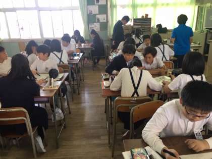 詩の朗読では、谷川俊太郎の「生きる」の詩の意味を考え、それをふまえて朗読をしました。