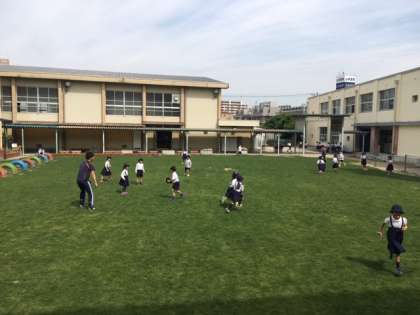 青々とした芝生の上を元気に走り回る子どもたちの姿が見られました。
