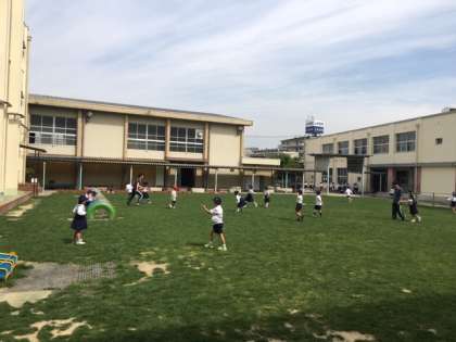 1年1組は、学活の時間にクラスみんなで鬼ごっこをしていました。