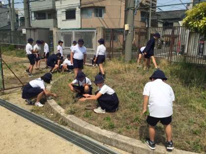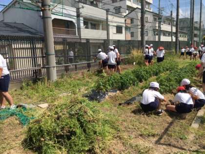 6年生は月曜日、5年生は今日、東運動場の草抜きを行いました。