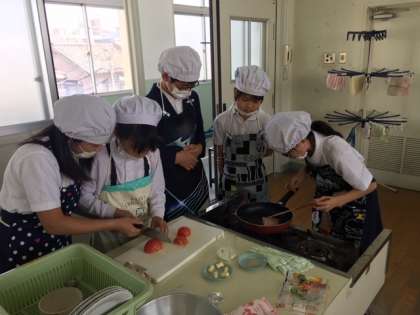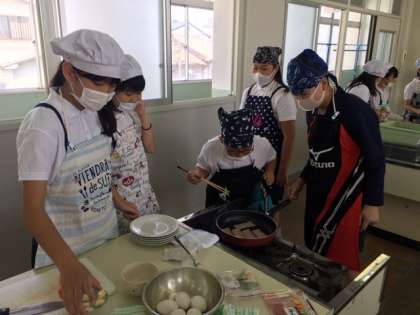 昨日と今日、6年生は家庭科で調理実習をしました。課題は「朝食を作ろう」ということで、スクランブルエッグ、ベーコン、トマトという献立です。